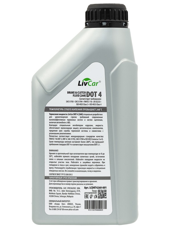 New: тормозная жидкость LivCar BRAKE & CLUTCH FLUID DOT-4