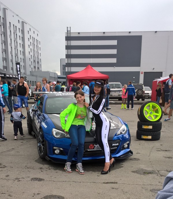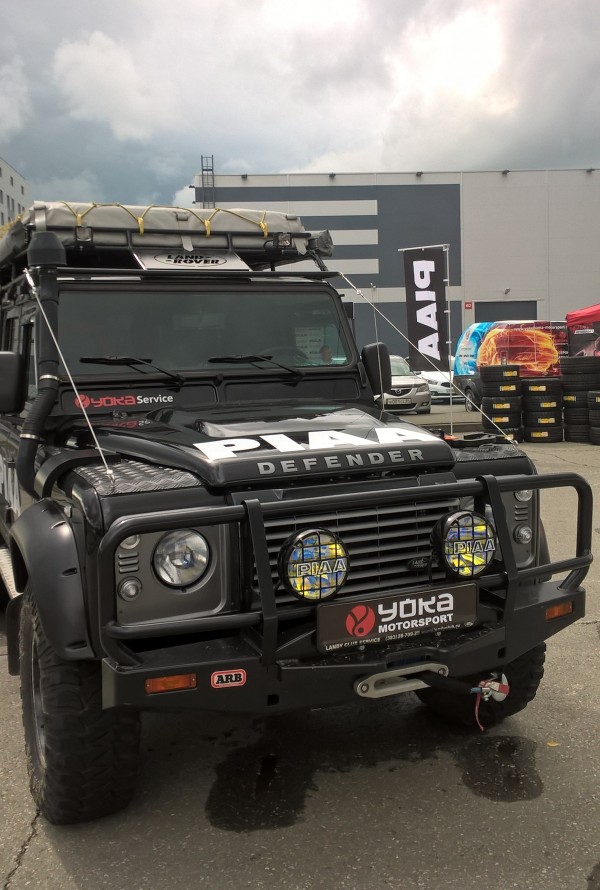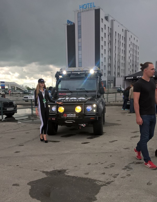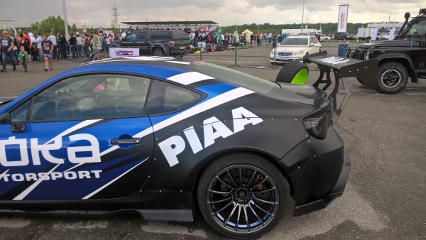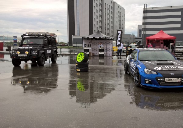 Погода не напугала даже любителей дрифта. Все желающие с удовольствием фотографировались со спорт-каром SUBARU BRZ и суровым LAND ROVER DEFENDER, на котором установлены продукты бренда PIAА: