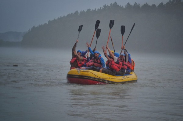 По окончании мероприятия совместная команда из двух компаний совершила трехчасовой сплав по реке Катунь, успешно преодолев все пороги!
