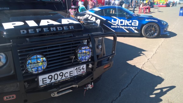 Гости чемпионата с удовольствием фотографировались со спорт-каром SUBARU BRZ и суровым LAND ROVER DEFENDER, на которых установлены продукты PIAА.