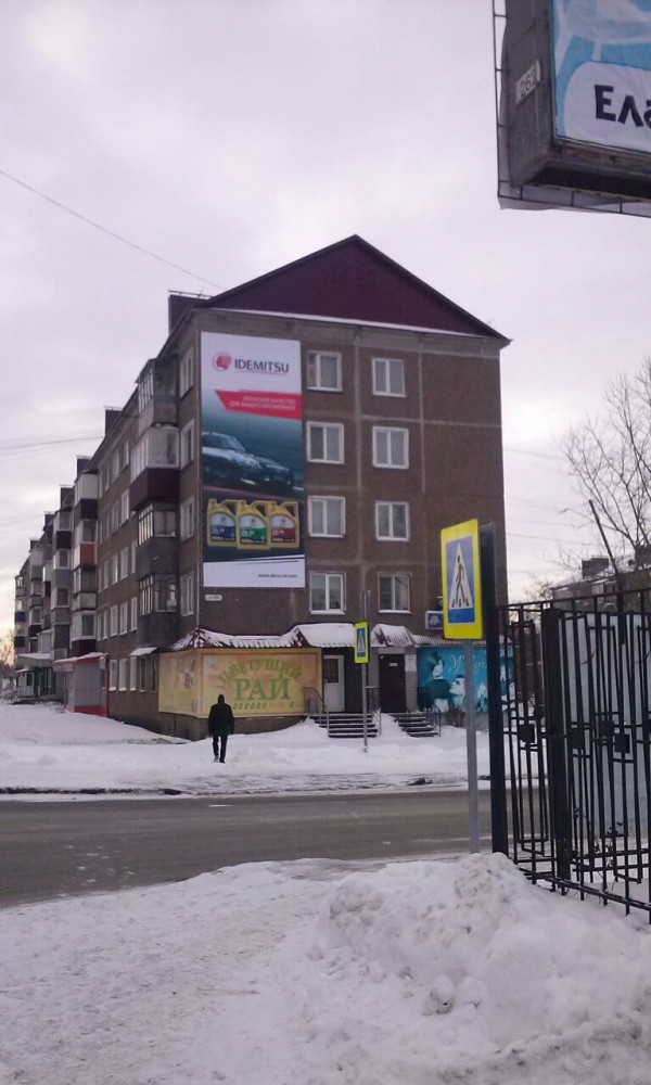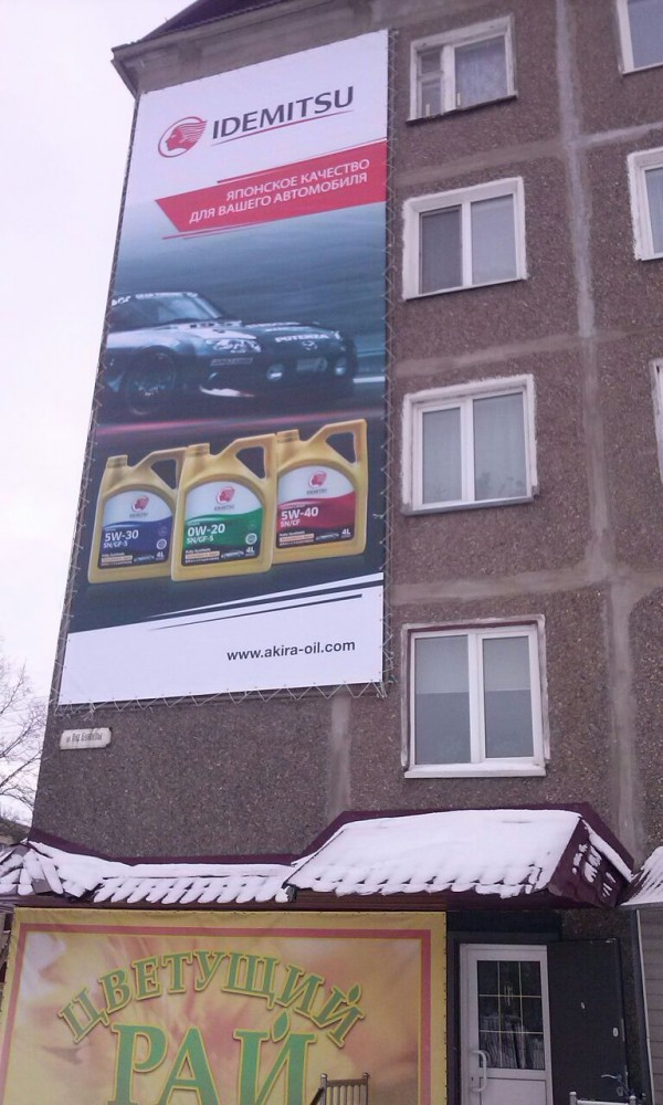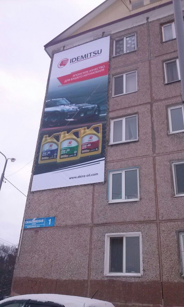 С 18 января, в рамках программы популяризации продукции торговой марки Idemitsu в городе Южно-Сахалинск были размещены имиджевые брендмауэры.