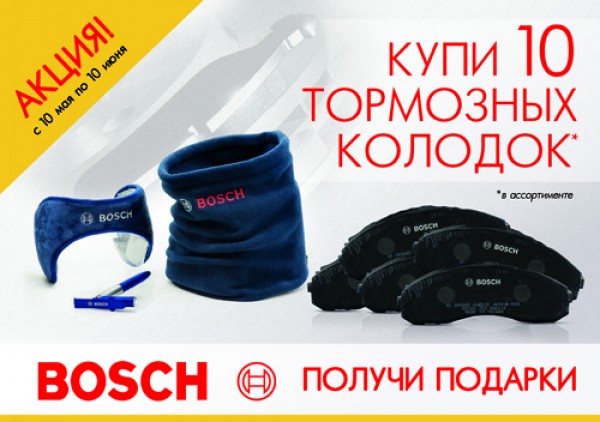 С 10 мая 2017 года Akira Oil запускает новую акцию для розничных клиентов Приморского края. Приобретая 10 тормозных колодок BOSCH (в ассортименте) вы получаете брендированные подарки: Ручка-фонарик, снуд, теплые наушники.