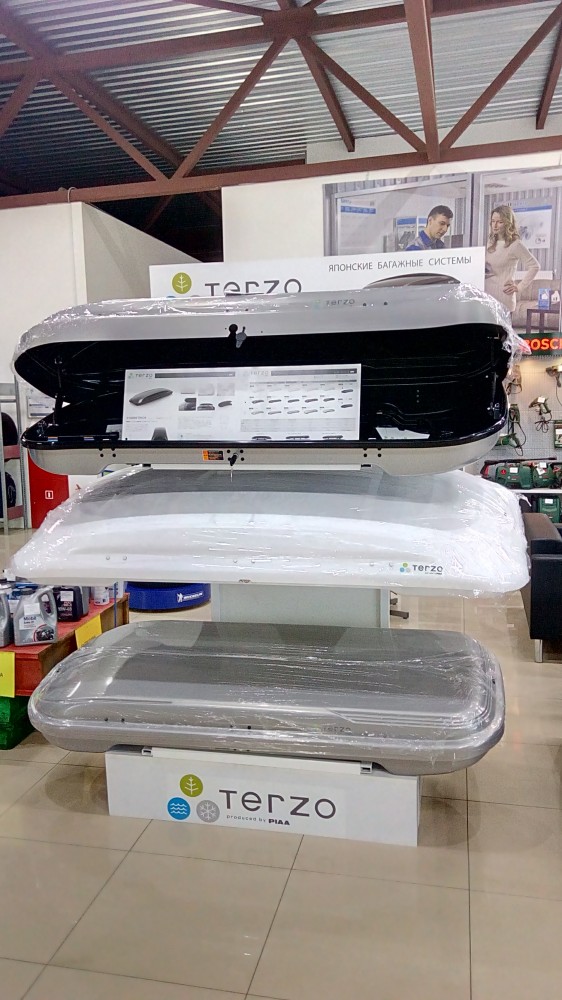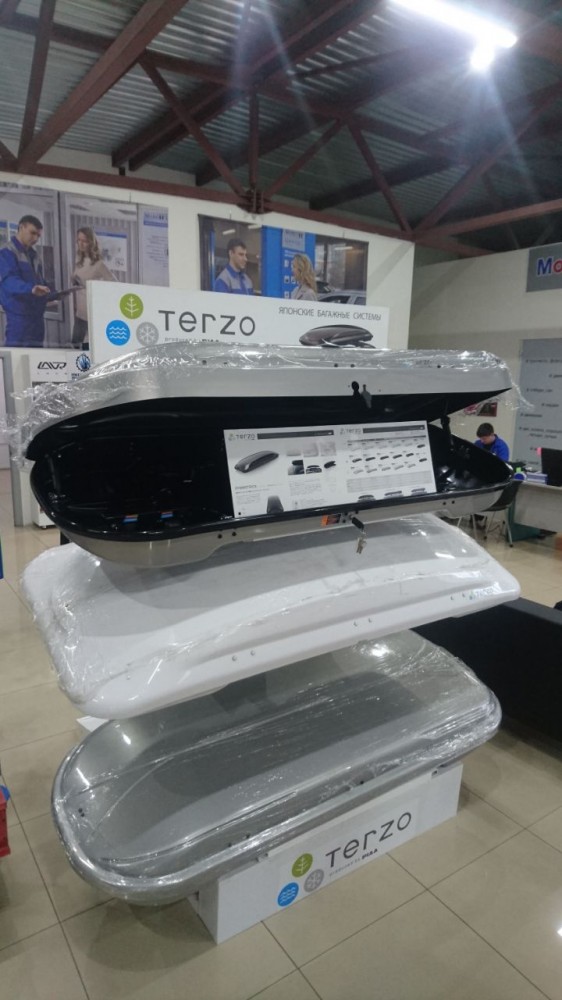8 июня 2017 г. в техническом центре ООО «Подорожник-Авто» была установлена фирменная стойка с продукцией японского бренда TERZO, на которой размещены багажные боксы и крепления для велосипедов.