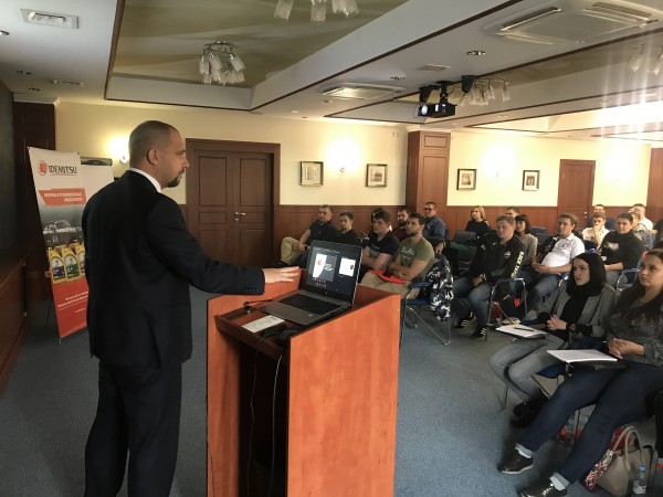 Ведущим спикером мероприятия выступил специалист компании Идемитсу Лубрикантс Рус - Василий Кислов. Он ознакомил участников семинара с историей компании, подробно рассказал об ассортименте продукции, основных характеристиках, конкурентных преимуществах и применимости масел IDEMITSU.